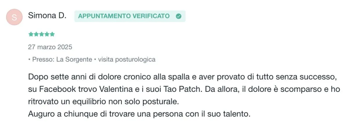 👩⚕️ Unica nella zona a utilizzare TaoPatch®, un dispositivo nanotecnologico che migliora postura, tono muscolare e benessere in modo naturale